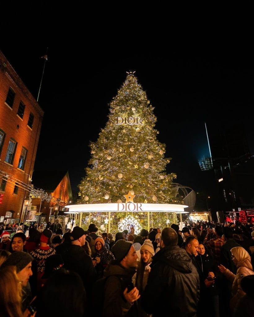 If you’re looking for pure, uncut festive vibes, this is the spot. The giant tree in Trinity Square is the heart of the Distillery Winter Village. Surrounded by cobblestone streets, charming market stalls, and sparkling lights, it feels like stepping into a European Christmas card.