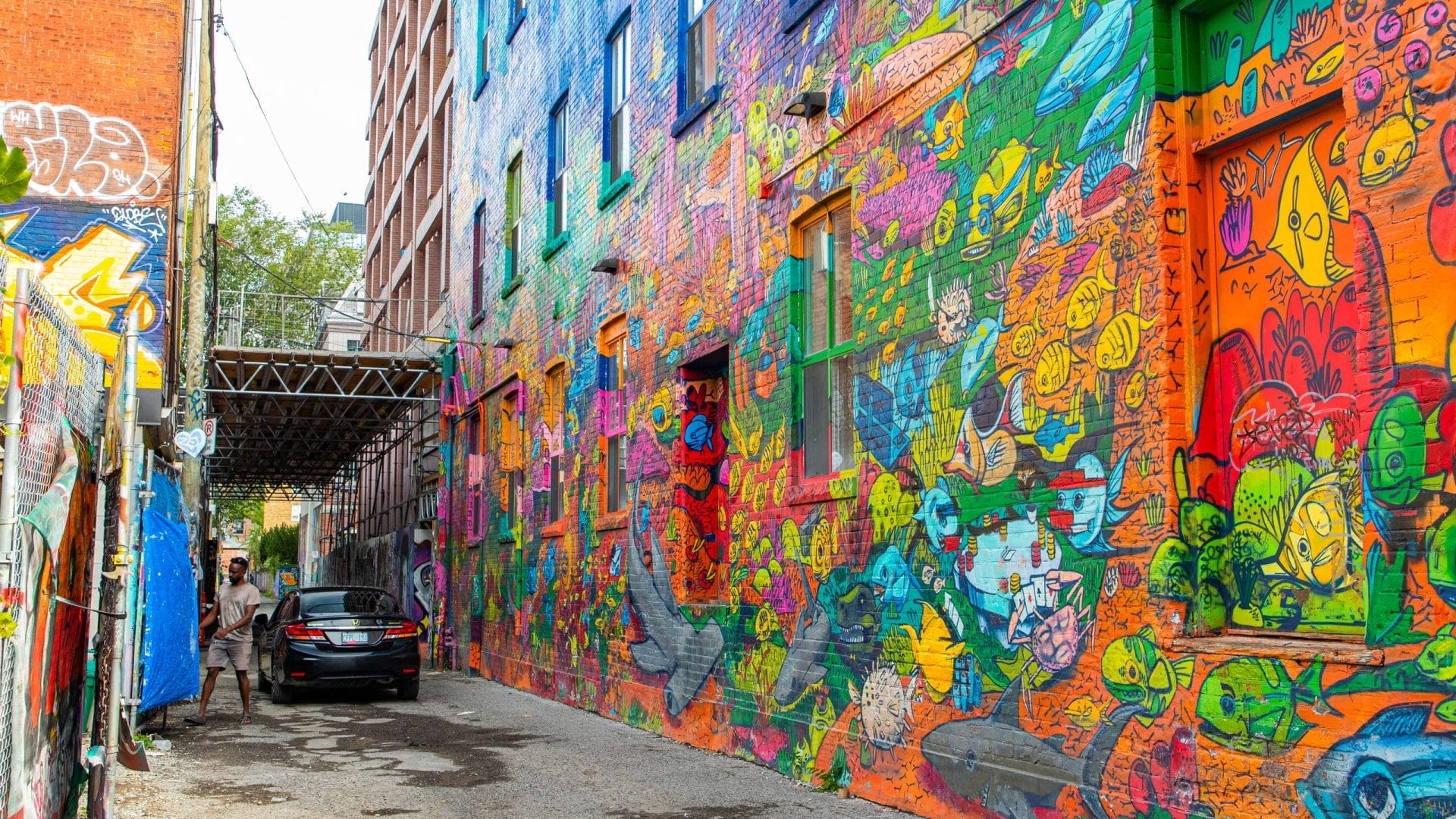 Queen Street West’s Graffiti Alley represents Toronto’s urban art scene in its rawest form. This constantly evolving outdoor gallery stretches behind buildings, showcasing everything from quick tags to elaborate murals that rival gallery pieces.