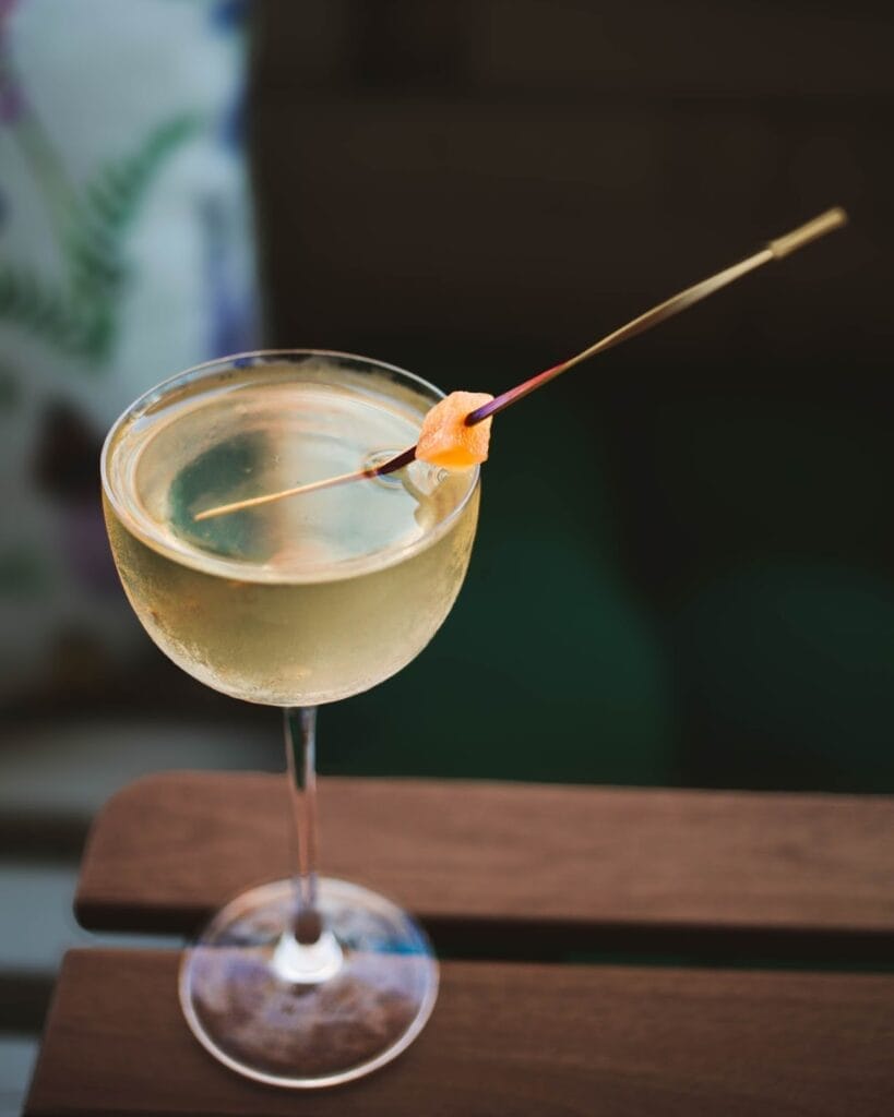 A blend of clarified watermelon, gin, peaty scotch, sencha, and green cardamom, this drink delivers an earthy, smoky edge alongside a refreshing fruitiness. It’s smooth, balanced, and made for slow sipping.