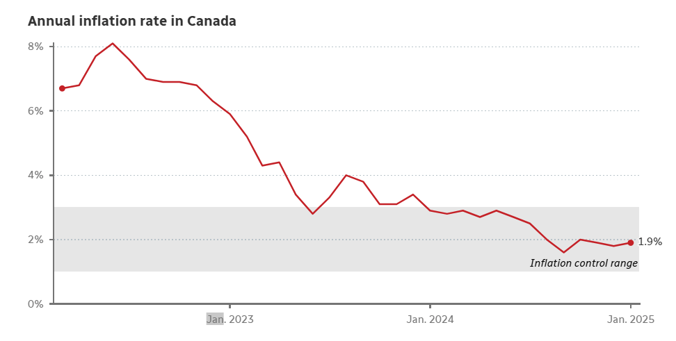 Canada’s Inflation Rate Rises to 1.9% in January 2025