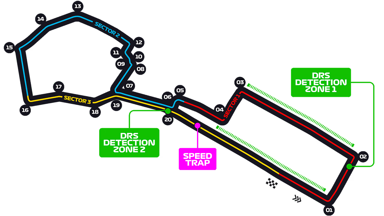 The Yas Marina Circuit was opened in 2009 and has staged the season finale in recent years, and saw the dramatic and controversial last lap decision between Max Verstappen and Lewis Hamilton in 2021. The circuit features a 1.2-kilometer straight between Turns 5 and 6 that provides excellent overtaking opportunities. The circuit also features a challenging run through Turns 10-12, where the drivers experience extreme braking with the application of lateral load.
