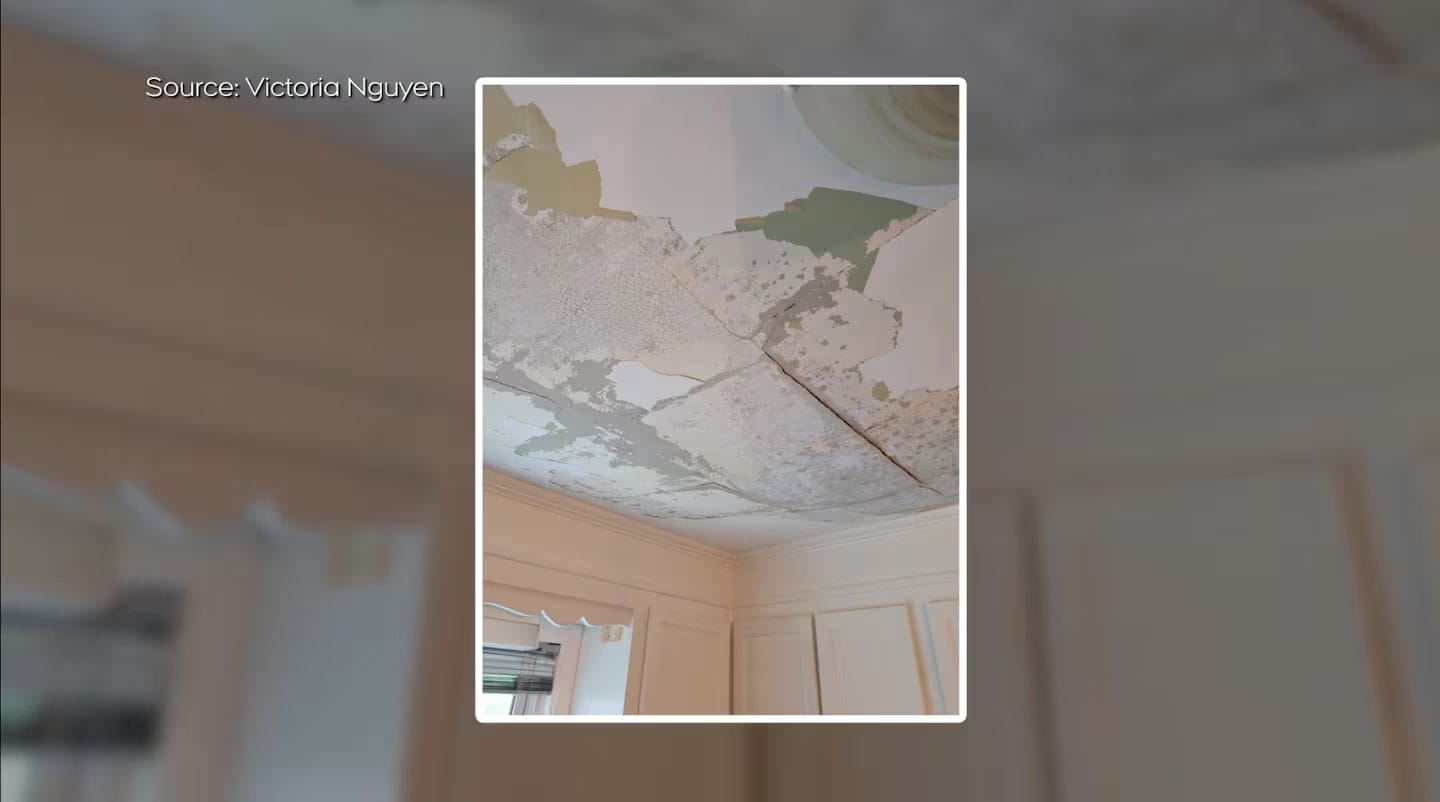 “It happened right in front of my eyes because I was feeding my baby,” Nguyen said. “Suddenly, without any notice at all, it collapsed. It was loud, surprisingly. It was heavy. The drywall went down and it nearly missed my father.”