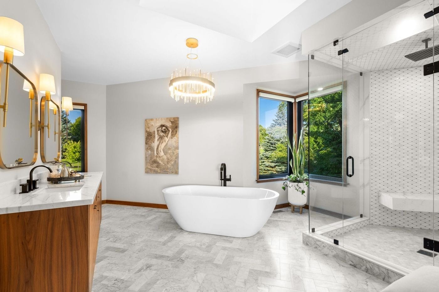 - Private Bedrooms: The home offers five bedrooms, each with its own ensuite bathroom. The primary suite is particularly impressive, with a walk-in closet and a luxurious six-piece ensuite bathroom.
